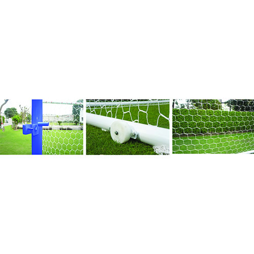 • 4 non puncture 10″ dia rubber wheels on each goal for easy movability on grass or synthetic ground